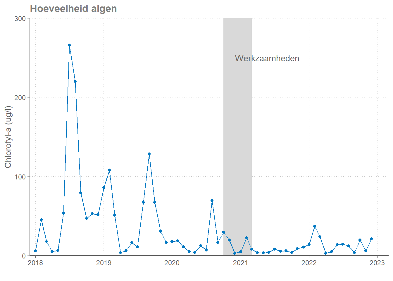 Als er veel voedingsstoffen in het water zijn kunnen algen snel groeien. Hierdoor is er een grote kans op (blauw)algenbloei. Om de hoeveelheid algen te meten wordt de hoeveelheid chlorofyl gemeten. Tijdens het groeiseizoen kan de hoeveelheid algen sterk schommelen. De chlorofylconcentraties laten zien dat er sinds de maatregelen weinig algen aanwezig zijn in de Bleiswijkse Zoom.