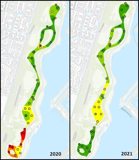 - Macrofauna: Van macrofauna zijn nog geen meetresultaten beschikbaar na de maatregelen. Gezien de gunstige ontwikkeling bij de waterplanten valt bij macrofauna ook een verbetering te verwachten.